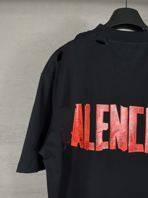 Balenciaga new collection distressed and faded loose-fitting short-sleeved T-shirt with print-5335