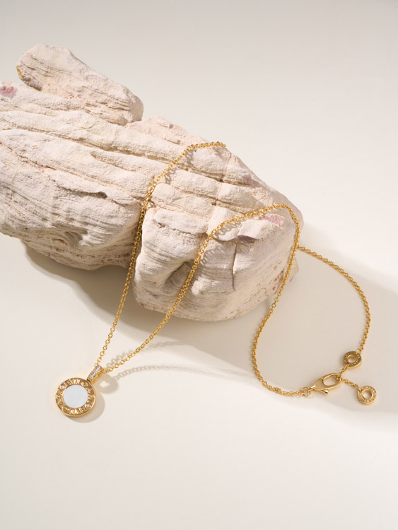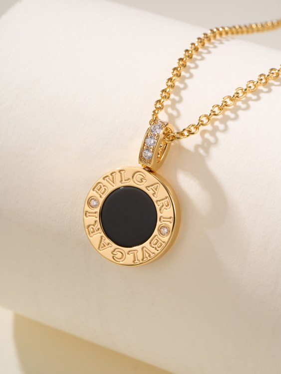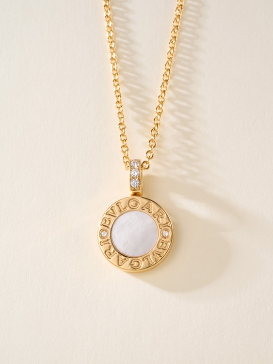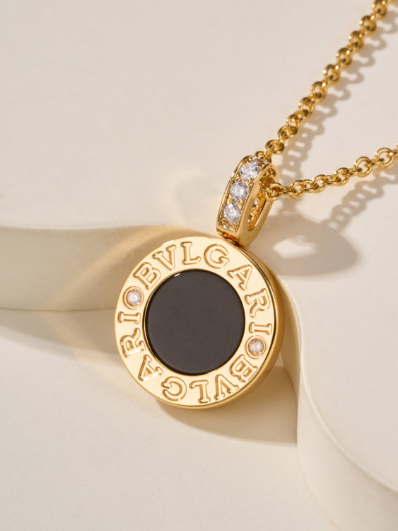 Bulgari double-sided coin black and white mother-of-pearl necklace-4001