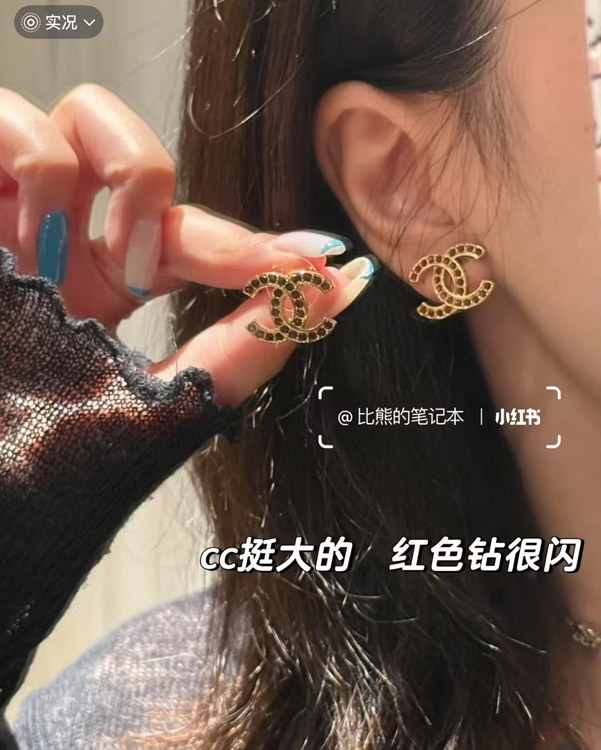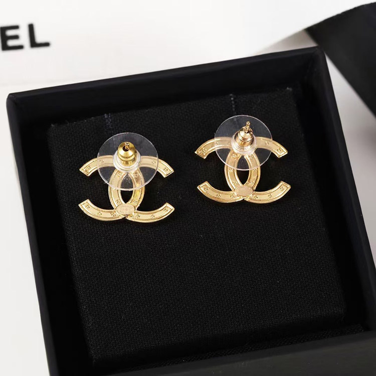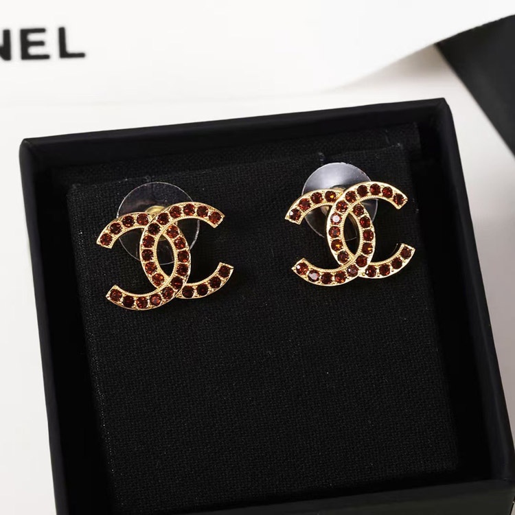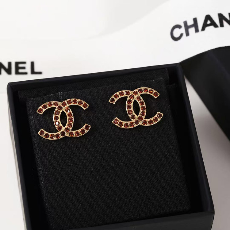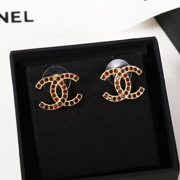 Chanel amber double c rhinestone vintage gold earrings-3742