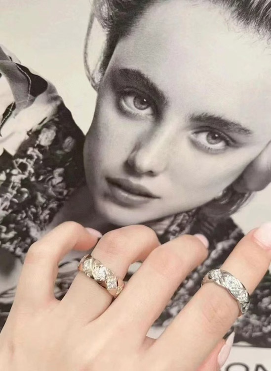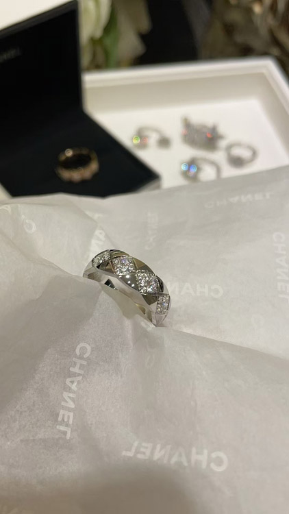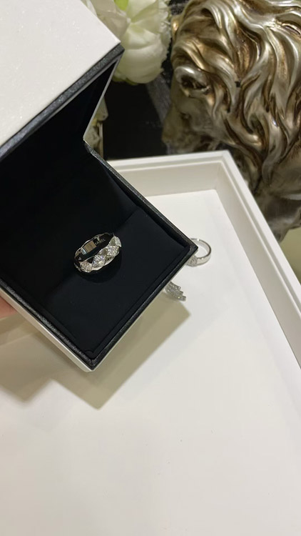 Chanel diamond pattern white gold ring-3753