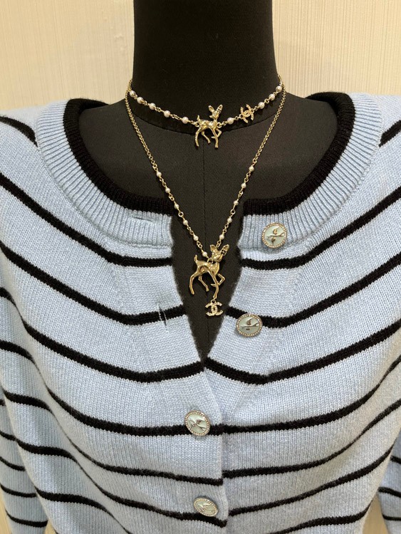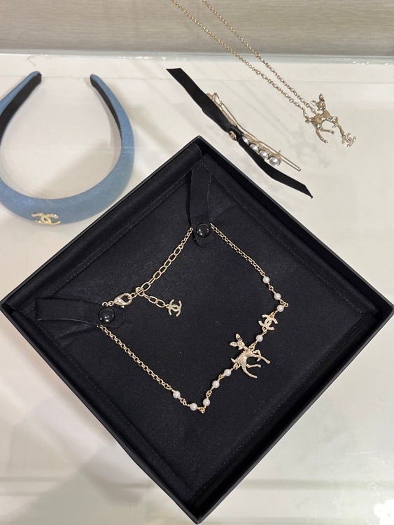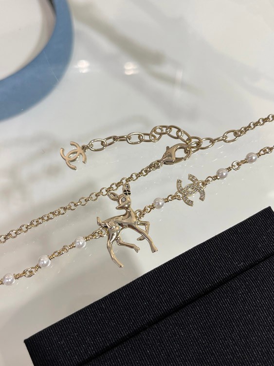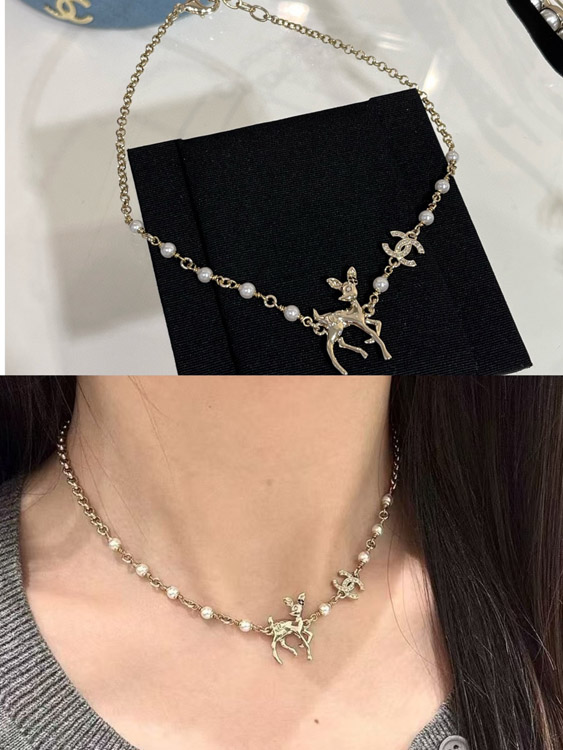 Chanel Golden Deer Full Diamond Double C Pearl Necklace-3749