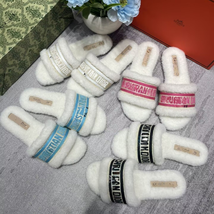 Dior embroidered shearling platform mules-5687