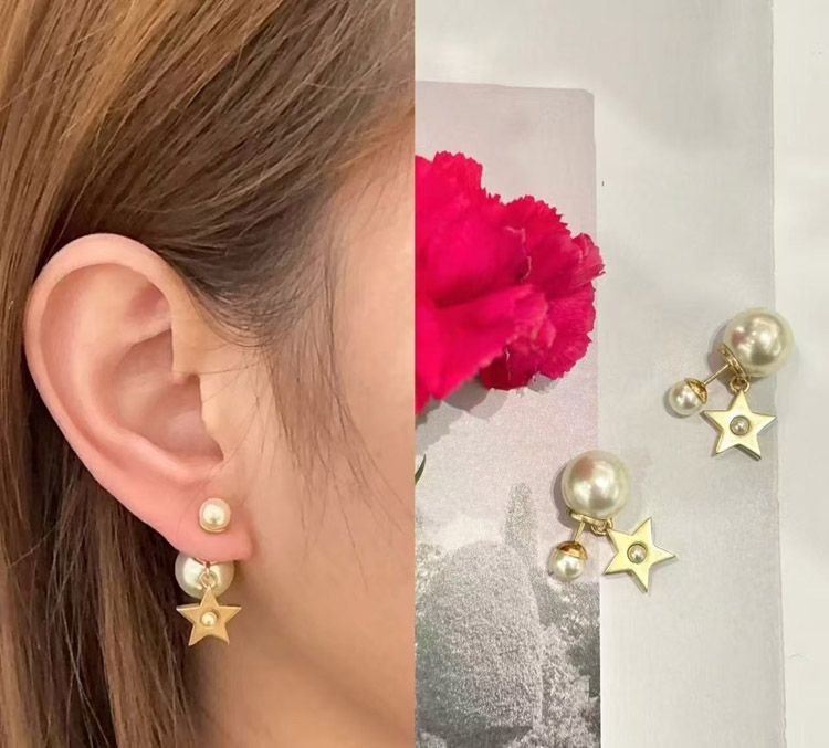 Dior gold star pearl double ball earrings-3707