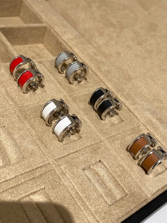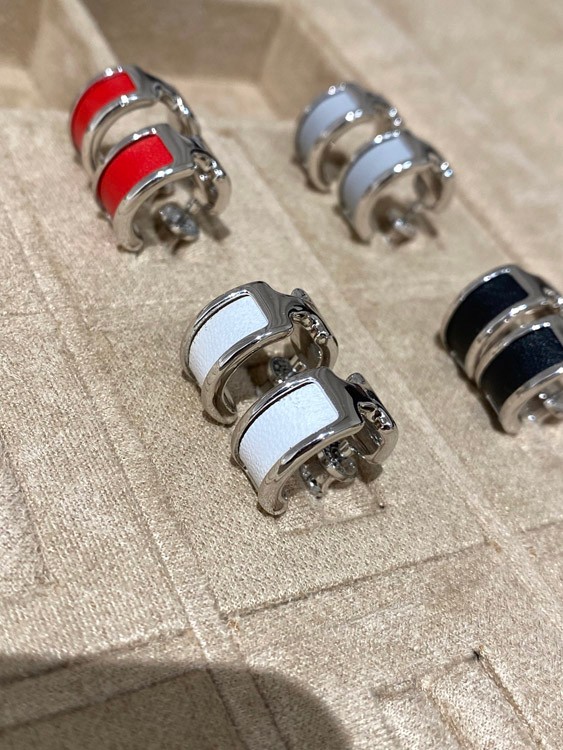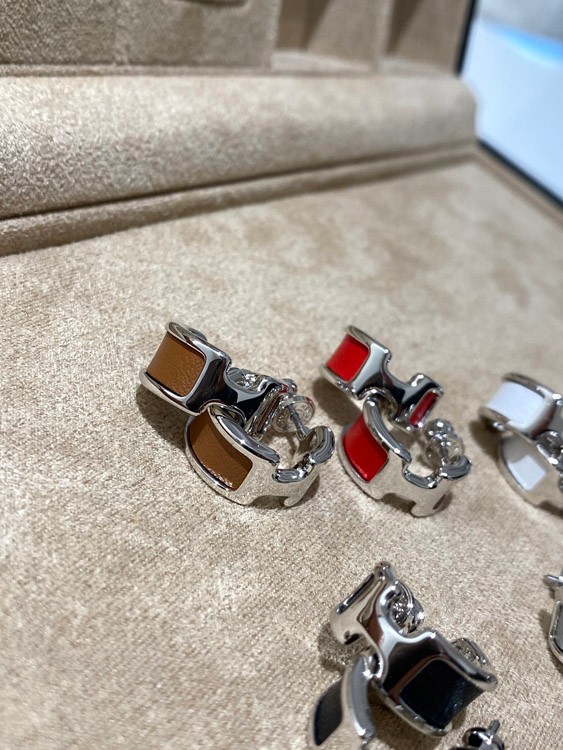Hermes leather stitching earrings-3611