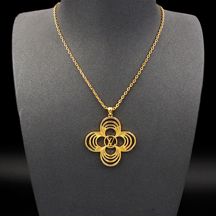Louis Vuitton LV Floral Round Flower Hollow Metal Wire Outline Necklace-3571