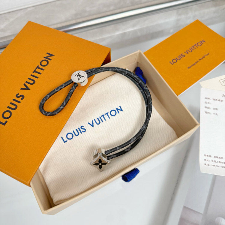 Louis Vuitton LV Letter Floral Black Flower Leather Buckle Bracelet-3640