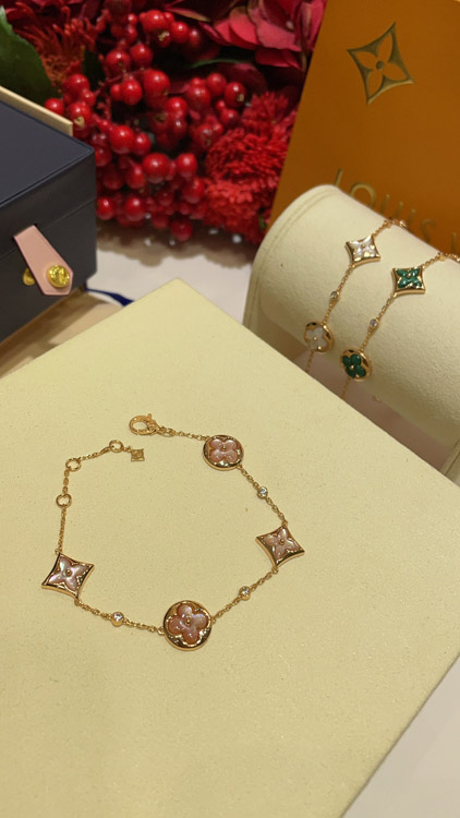 Louis Vuitton LV Pink Mother-of-Pearl Floral Four-Leaf Clover Rose Gold Bracelet-3728