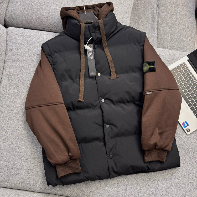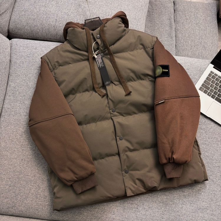 Stone Island hooded faux two-piece thickened puffer jacket-5262