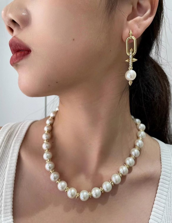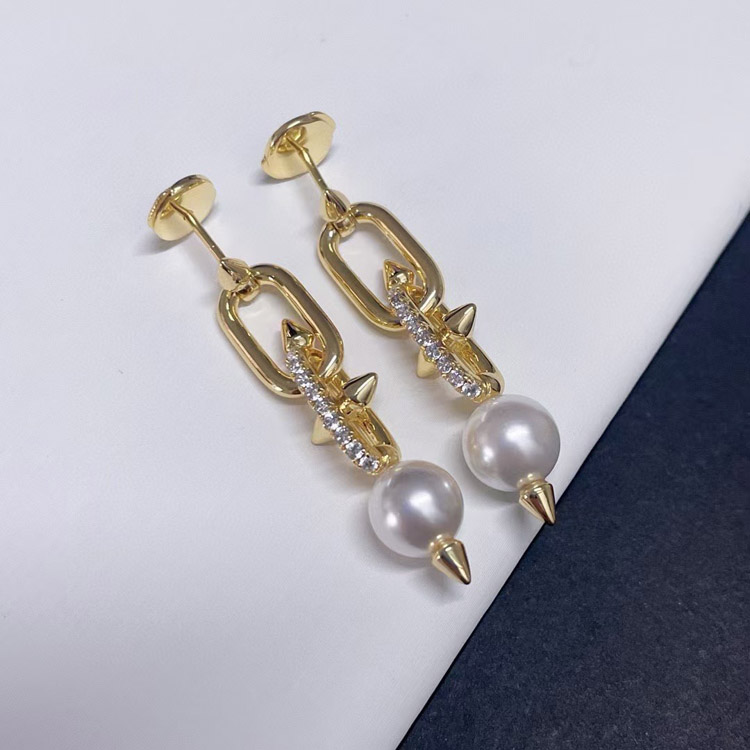Tiffany diamond pearl rivet earrings-3679