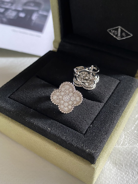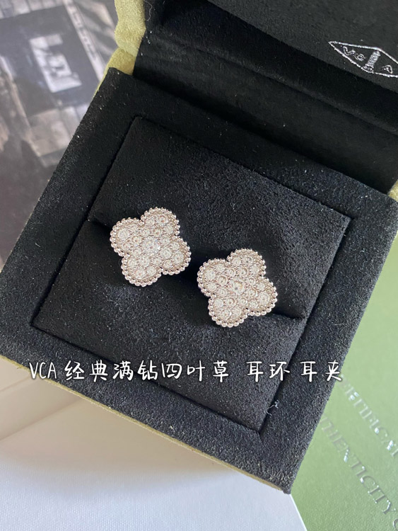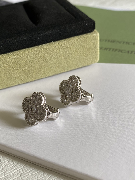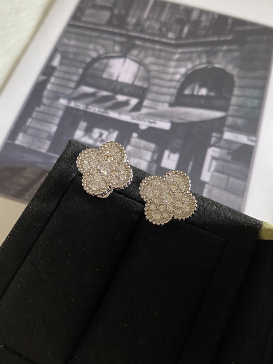 Van Cleef & Arpels full diamond four-leaf clover earrings-3958