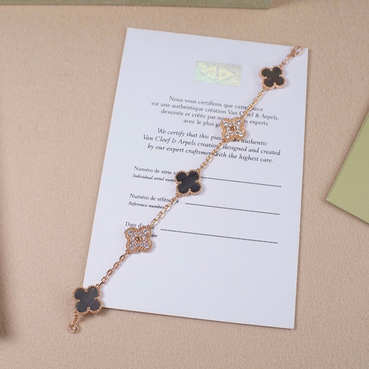 Van Cleef & Arpels Grey Mother-of-Pearl Diamond Five-Flower Bracelet-3691