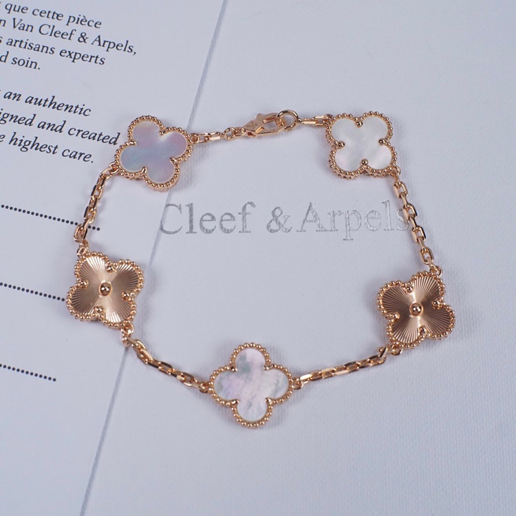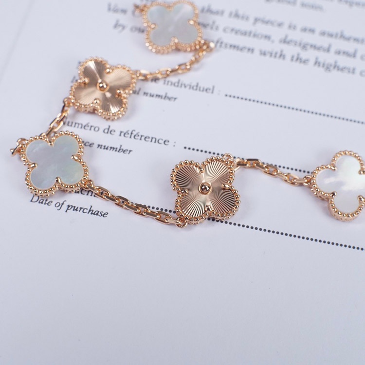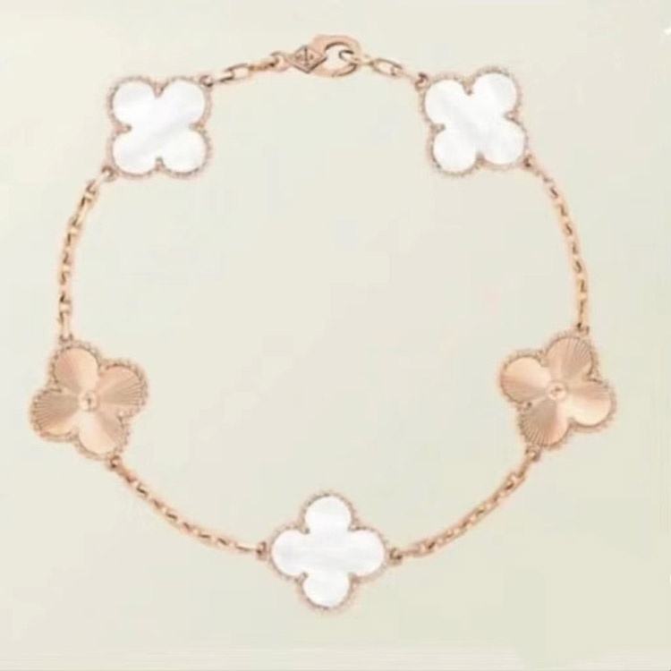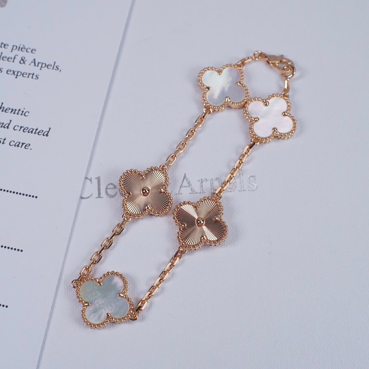 Van Cleef & Arpels White Mother-of-Pearl Laser Flower Bracelet-3689