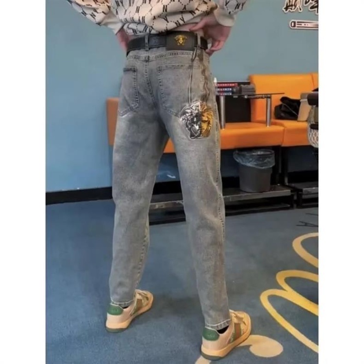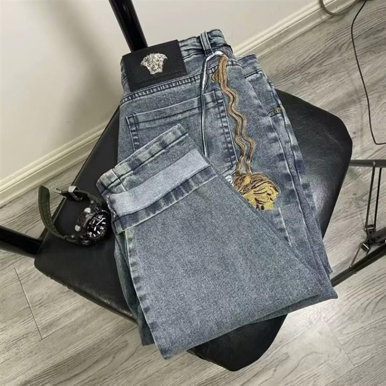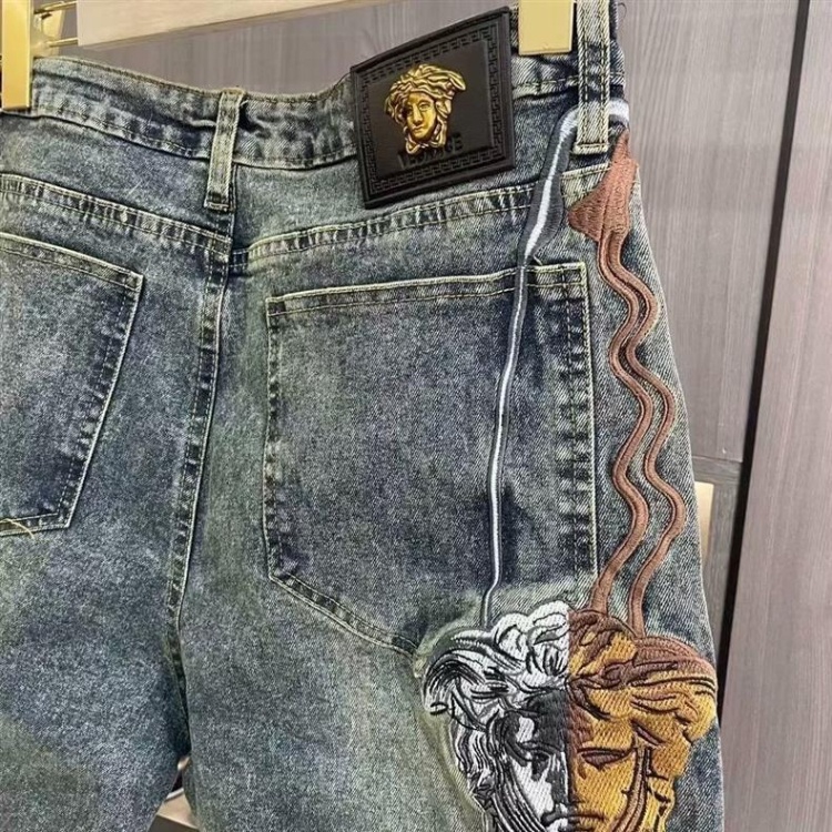 Versace new embroidered casual straight-leg versatile denim trousers-5868