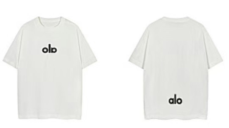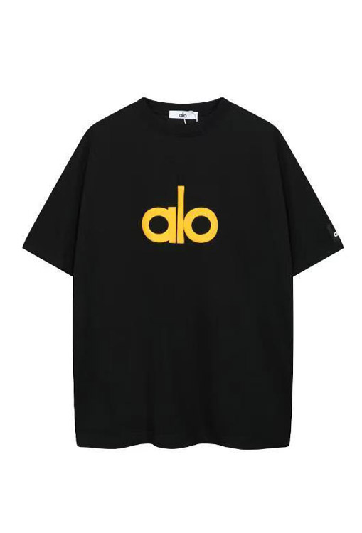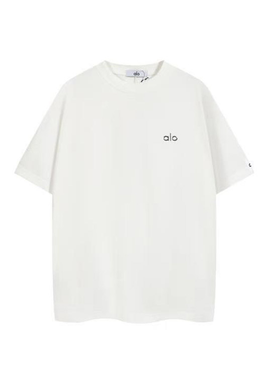 Home > ALO Foamed Letter Hot Stamped Silver Short-Sleeved Crew Neck T-Shirt-5096