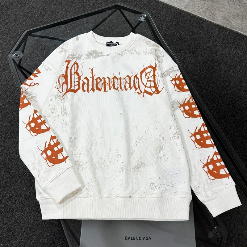 Balenciaga 100% Cotton Printed Crew Neck Sweatshirt-5529