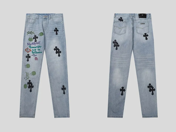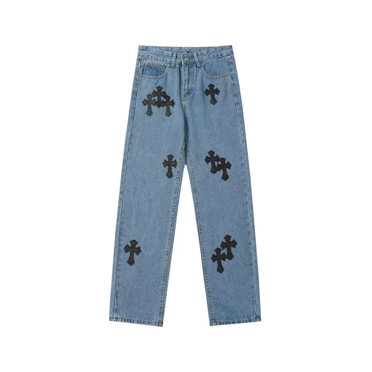Chrome Hearts CH Appliqué Embroidered Washed Loose-fitting Jeans-4939