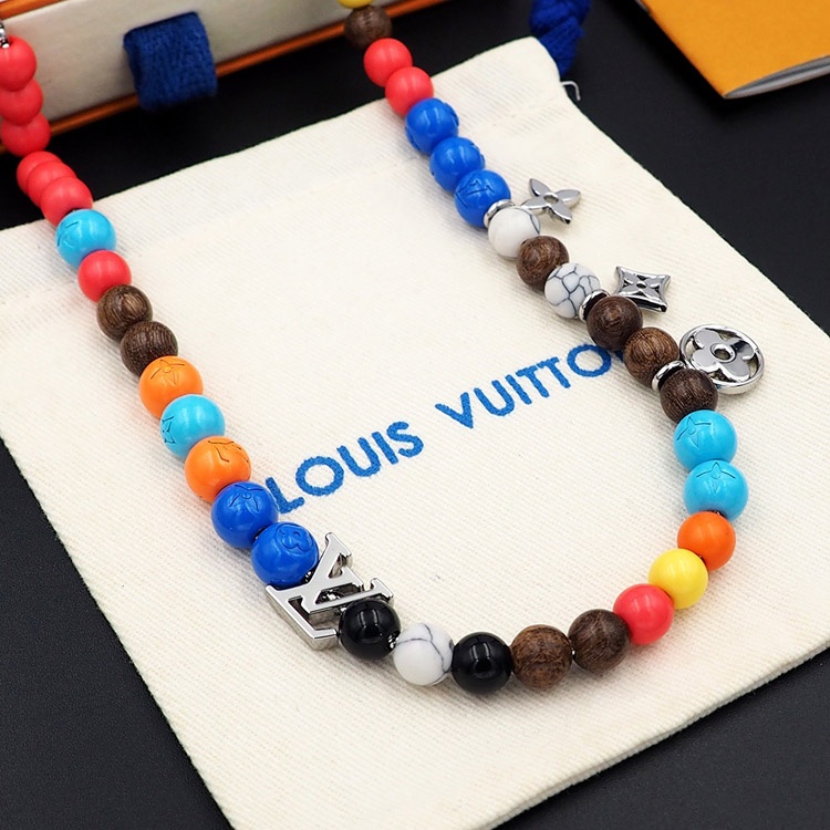 Louis Vuitton LV adjustable cord embellished wooden inscription metal beaded necklace-3950