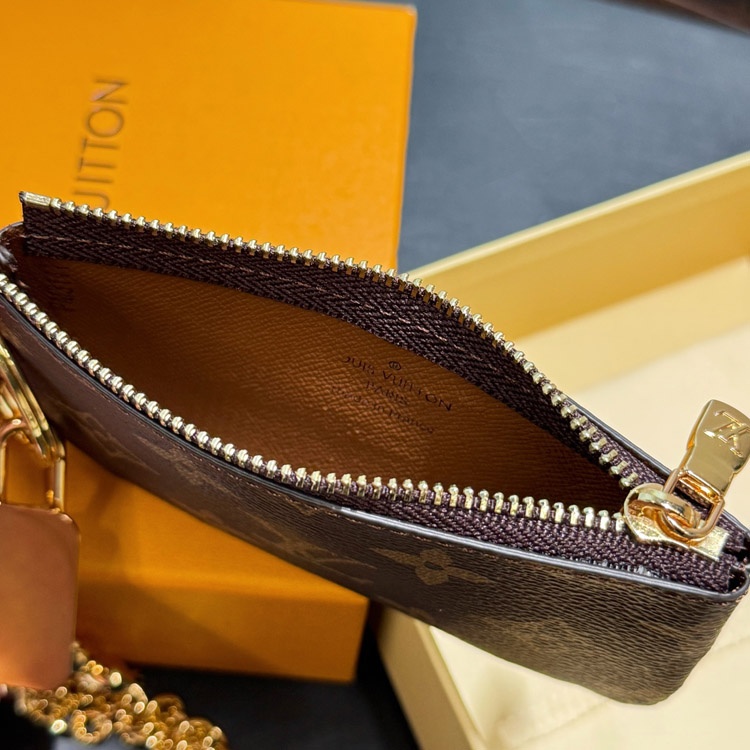 Home > Louis Vuitton LV brown old flower canvas chain key bag zipper coin-4049