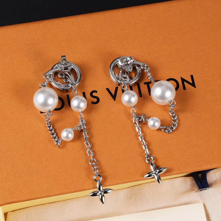 Home > Louis Vuitton LV silver letter diamond pearl tassel earrings-3865