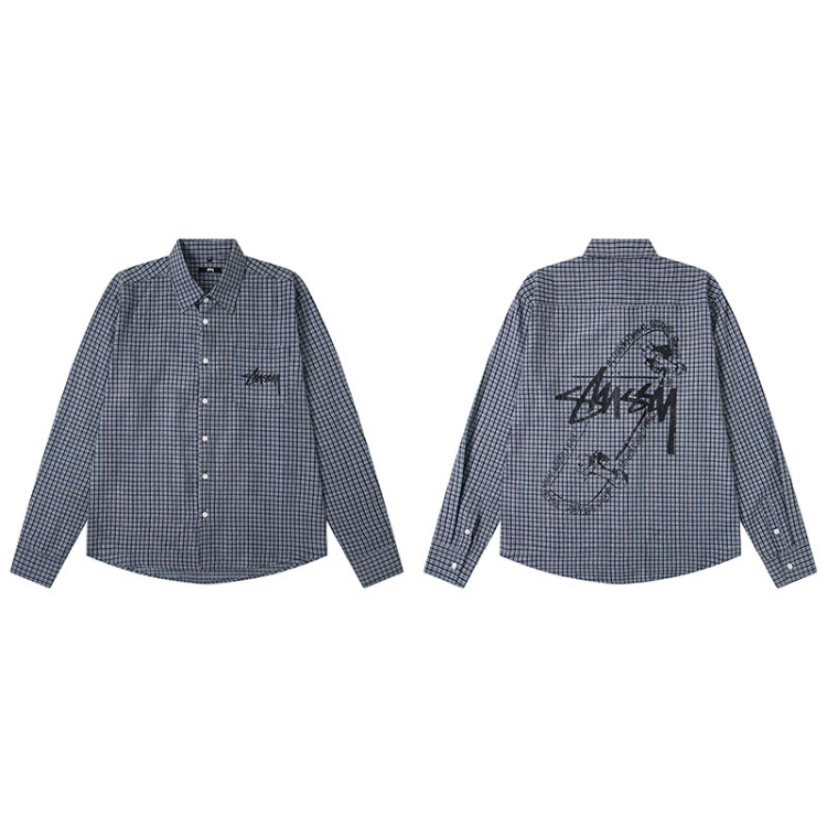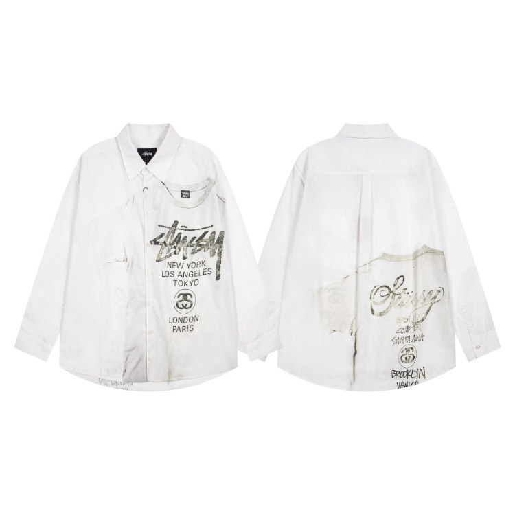 Stussy new loose-fitting casual Japanese-style long-sleeved printed shirt-5275
