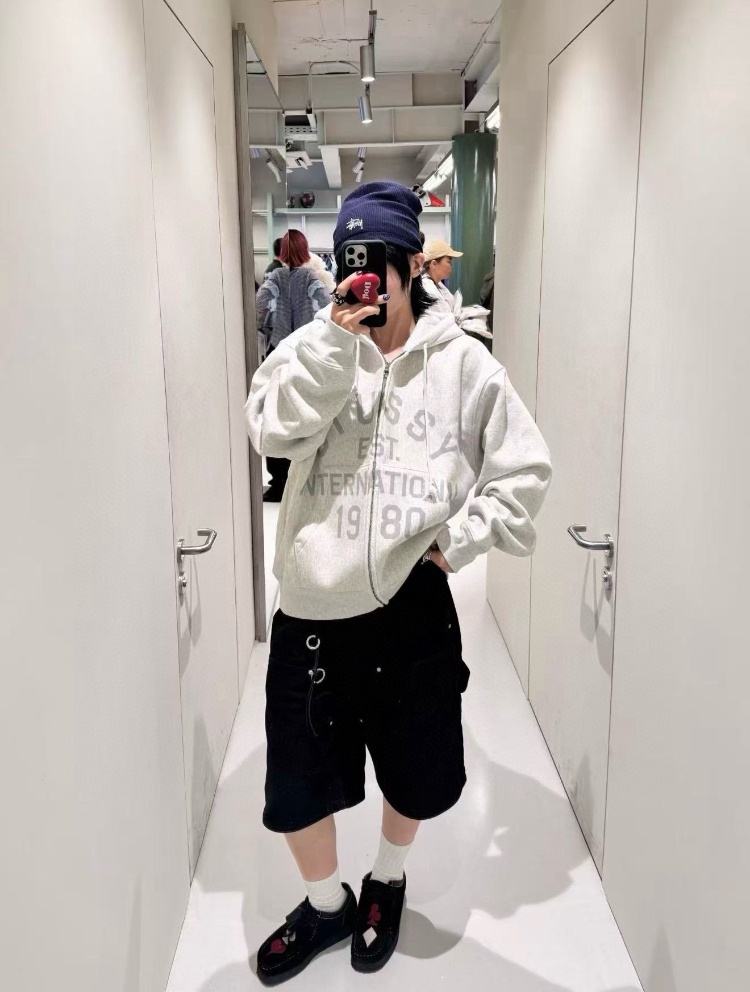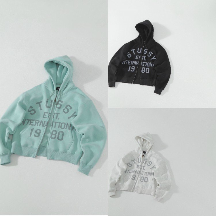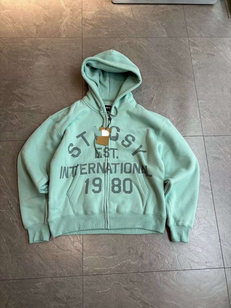 Stussy Zip-Up Cardigan Fleece Hooded Sweatshirt Jacket-6435