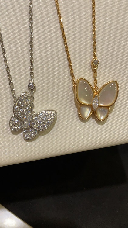 Van Cleef & Arpels White Mother-of-Pearl Diamond Floral Butterfly Necklace-3733